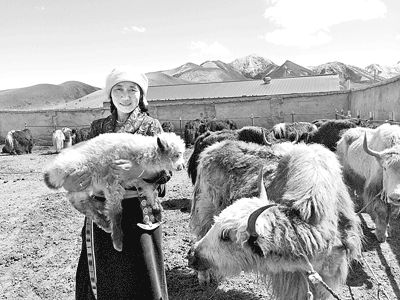 瑪多縣牧民仁青太的妻子抱起兩天前出生的小牦牛告訴記者:“按專(zhuān)家的辦法,冬天的產(chǎn)羔率大大提高了?!?nbsp;
