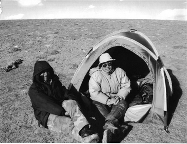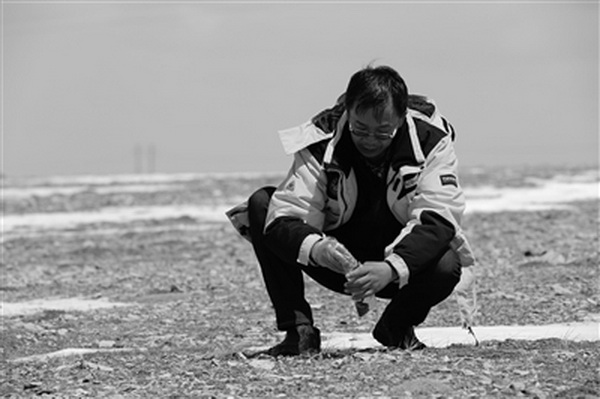 帳篷扎在了卓乃湖東岸沖積灘。蘇建平博士帶著學(xué)生,沿河流兩岸采集樣品。下午返回駐地,吃過(guò)簡(jiǎn)單的飯,就開(kāi)始處理、清點(diǎn)樣品。因無(wú)法精確定位藏羚羊的具體位置,他們只能迎著朝陽(yáng),頂著寒風(fēng),在荒野中不斷地走,不斷地找,一天十多公里。有時(shí)候,蘇建平讓學(xué)生們?nèi)ポ^近的地方,自己選擇更遠(yuǎn)的方向,等學(xué)生們采完樣去找老師,發(fā)現(xiàn)他已跑到至少幾公里外的另一個(gè)地方,裂開(kāi)的嘴唇結(jié)滿(mǎn)了血痂,不停地喘著粗氣。