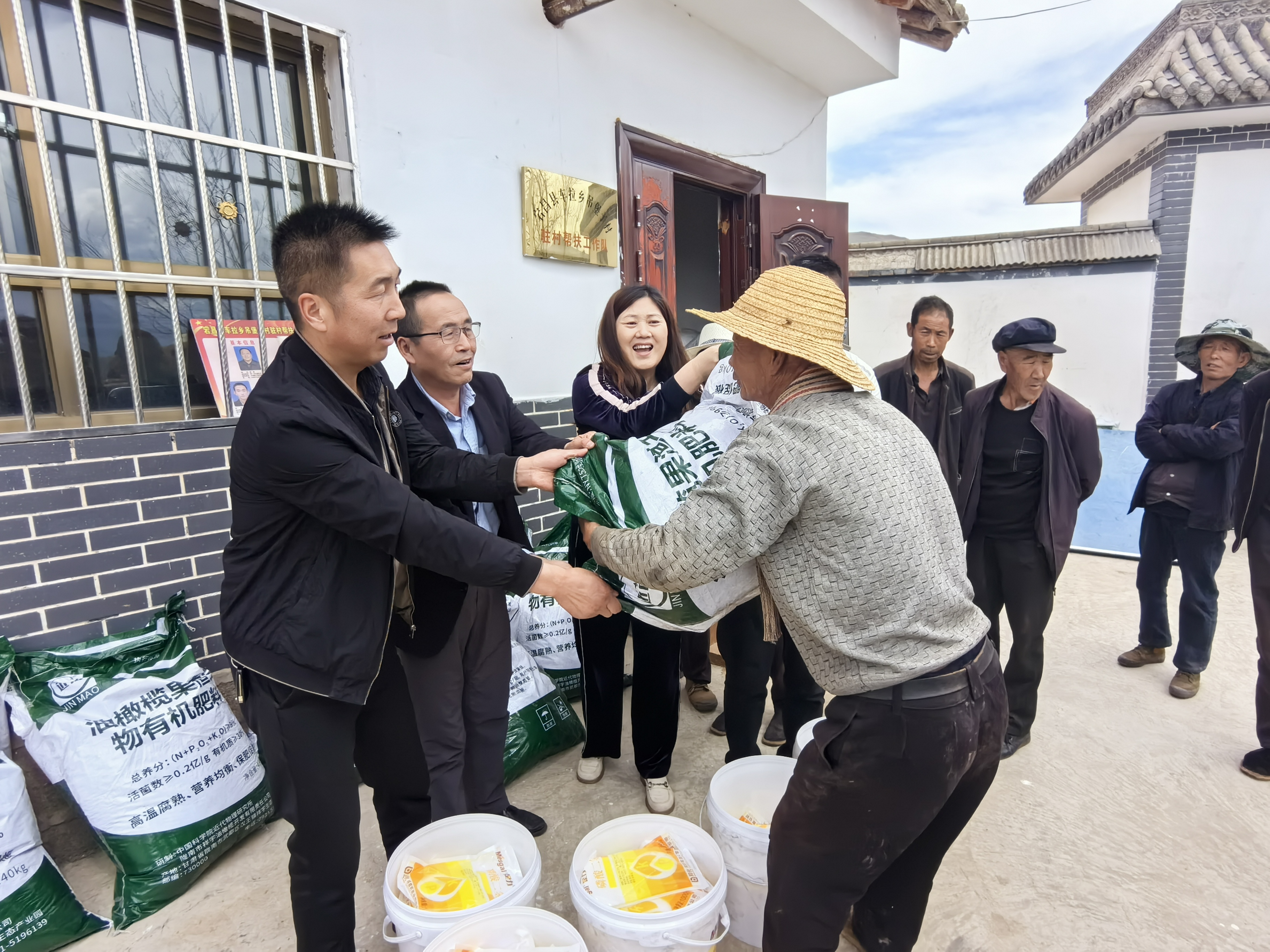 本次發(fā)放產(chǎn)品均由王曙陽(yáng)研究員捐贈(zèng),其中“油橄欖果渣生物有機(jī)肥料”是王曙陽(yáng)研究員團(tuán)隊(duì)與隴南翔宇油橄欖開(kāi)發(fā)有限責(zé)任公司共同研制的最新科技產(chǎn)品,以油橄欖果渣為主要原料,通過(guò)微生物高溫腐熟發(fā)酵而成,是一種新型特色生物有機(jī)肥料,可廣泛用于大田農(nóng)作物、果樹(shù)、蔬菜以及花卉等農(nóng)作物生產(chǎn),將對(duì)吊堡子村綠色道地藥材的品質(zhì)提升、產(chǎn)量提高起到很好的促進(jìn)作用。