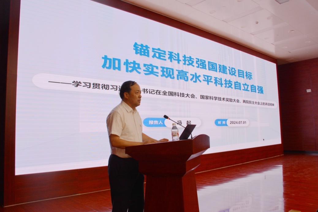 院長馮起傳達(dá)學(xué)習(xí)了習(xí)近平總書記重要講話精神和全國科技大會精神,作了《錨定科技強(qiáng)國建設(shè)目標(biāo) 加快實(shí)現(xiàn)高水平科技自立自強(qiáng)》專題報(bào)告。他強(qiáng)調(diào),全體黨員干部要牢記國家戰(zhàn)略科技力量職責(zé)定位,面向國家重大戰(zhàn)略需求和科技前沿,持續(xù)凝練并推動重大科技任務(wù)攻關(guān),自覺把科研追求融入建設(shè)科技強(qiáng)國的偉大事業(yè)中,將學(xué)習(xí)成果轉(zhuǎn)化為建設(shè)科技強(qiáng)國的強(qiáng)大動力和生動實(shí)踐,推動各項(xiàng)工作不斷取得新的更大的成績。
