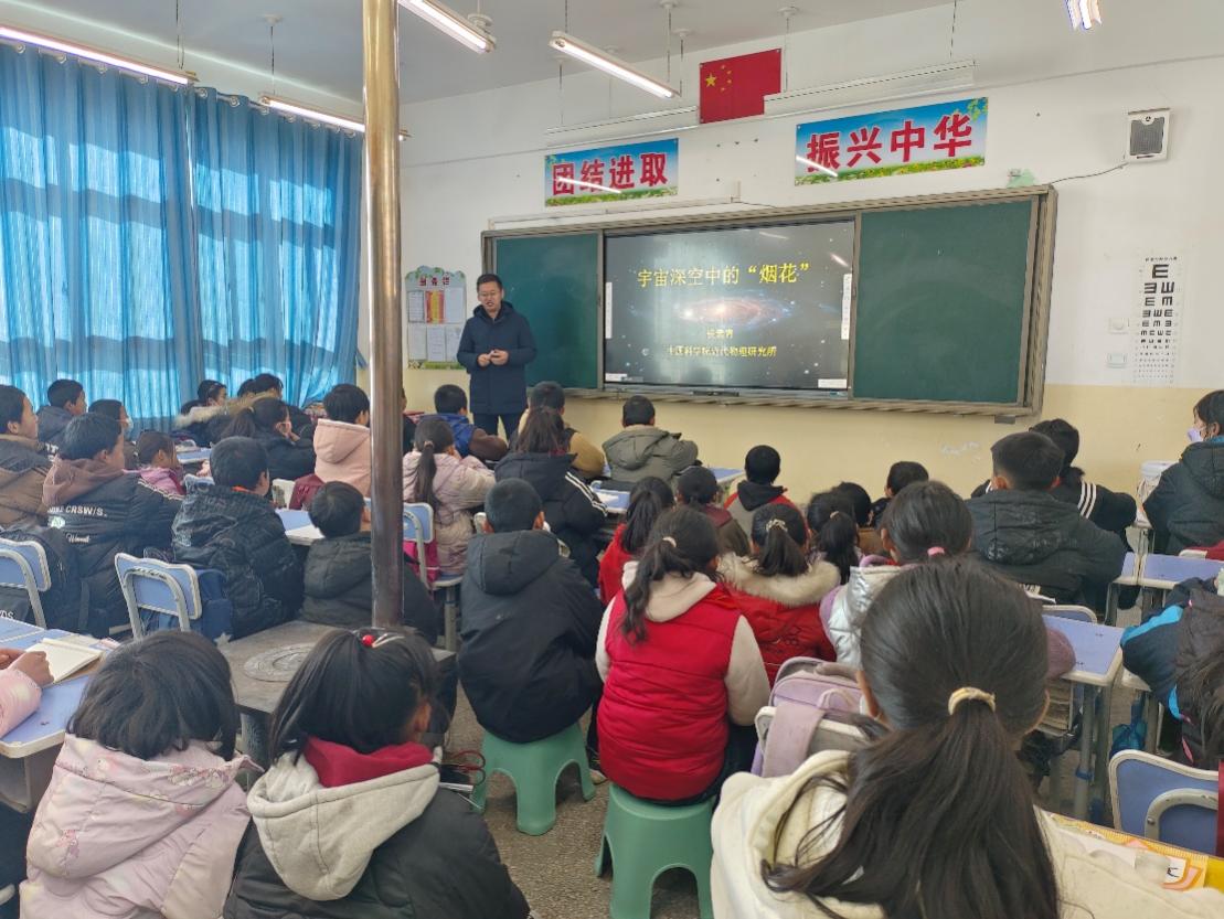 為建立健全結對開展教育幫扶工作機制,近代物理所研究員、首屆中國科技青年論壇一等獎獲得者侯素青老師受聘王泉小學擔任“科技教師”,并作了題為《宇宙深空中的“煙花”》的科普報告。