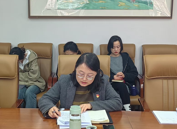 趙海燕主持會議并領(lǐng)學(xué)文件