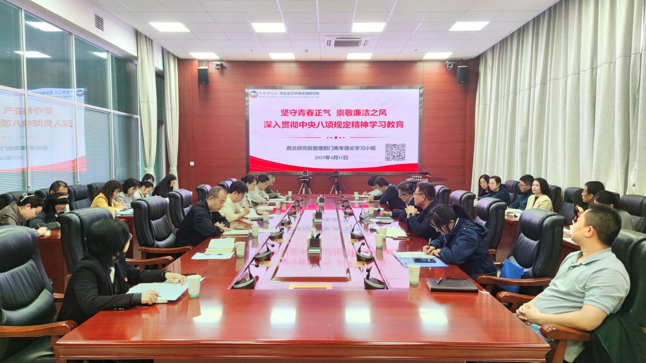 4月11日,中國科學院西北生態(tài)環(huán)境資源研究院青年理論學習小組(管理片)召開“堅守青春正氣 崇敬廉潔之風,深入貫徹中央八項規(guī)定精神學習教育”學習交流會。西北研究院黨委書記、小組指導老師張長春應邀參加會議。會議由小組組長瞿海燕主持。