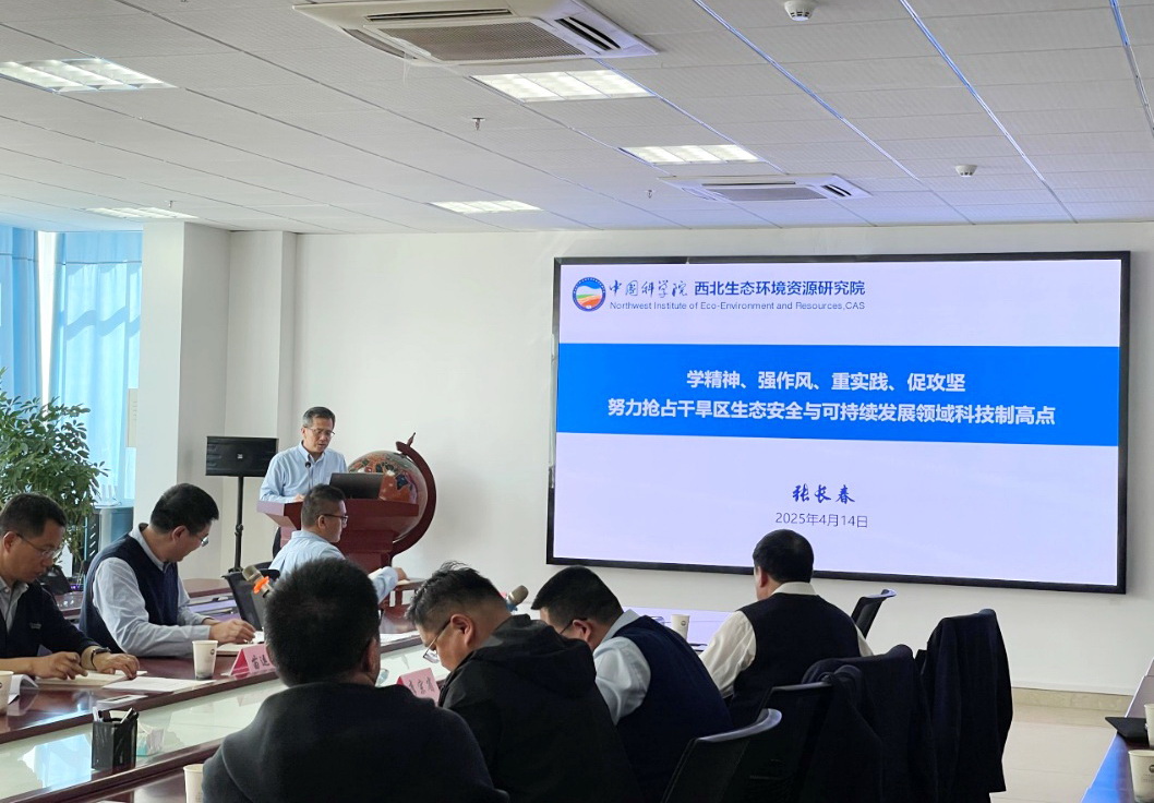 4月14日,中國(guó)科學(xué)院西北生態(tài)環(huán)境資源研究院干旱區(qū)生態(tài)安全與可持續(xù)發(fā)展全國(guó)重點(diǎn)實(shí)驗(yàn)室(簡(jiǎn)稱干旱區(qū)生態(tài)安全重點(diǎn)實(shí)驗(yàn)室)黨總支召開(kāi)黨員大會(huì)暨深入貫徹中央八項(xiàng)規(guī)定精神學(xué)習(xí)教育專題學(xué)習(xí)會(huì)。西北研究院院長(zhǎng)馮起、黨委書(shū)記張長(zhǎng)春應(yīng)邀參加會(huì)議并作指導(dǎo)。副院長(zhǎng)、黨總支書(shū)記李宗省和黨總支委員、六個(gè)黨支部全體黨員參加會(huì)議。會(huì)議由黨總支組織委員左小安主持。