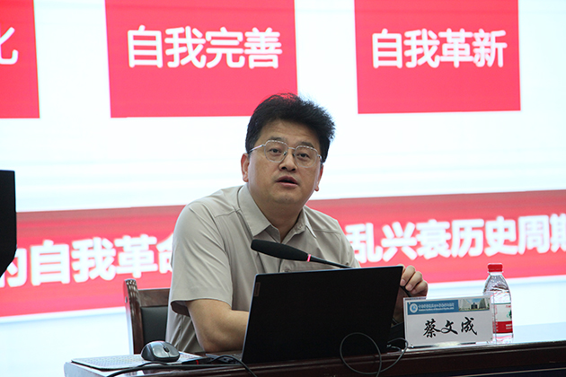 蔡文成作了題為“深刻理解習(xí)近平總書記關(guān)于黨的作風(fēng)建設(shè)重要論述及學(xué)習(xí)貫徹中央八項規(guī)定精神學(xué)習(xí)教育”的輔導(dǎo)報告。全面介紹了貫徹落實中央八項規(guī)定精神學(xué)習(xí)教育的重大意義,系統(tǒng)闡述了習(xí)近平總書記關(guān)于作風(fēng)建設(shè)重要論述的理論邏輯、歷史邏輯、文化邏輯和現(xiàn)實邏輯,并從“為什么抓”“抓什么”“如何抓”黨的作風(fēng)建設(shè)三個層面,深入解讀了習(xí)近平總書記關(guān)于作風(fēng)建設(shè)的重要論述的核心要義。最后,他結(jié)合科研院所實際,就如何貫徹落實黨的作風(fēng)建設(shè)及中央八項規(guī)定精神的實踐要求提出了思考和建議。