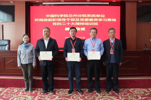 結業(yè)式上,蘭州分院分黨組副書記陳改學為學員頒發(fā)結業(yè)證,并代表蘭州分院分黨組對參訓學員提出三點希望:一是要持續(xù)在黨的二十大精神全面學習上下功夫,始終在思想上、政治上、行動上同以習近平同志為核心的黨中央保持高度一致;二是要持續(xù)在黨的二十大精神全面把握上下功夫,把學習好、宣傳好、貫徹好黨的二十大精神與開展學習貫徹習近平新時代中國特色社會主義思想主題教育結合起來,制定學習教育長效機制,確保常態(tài)長效;三是要持續(xù)在黨的二十大精神全面落實上下功夫,積極推動黨的二十大精神、習近平總書記對中科院的重要指示批示精神和院黨組各項重大決策部署落實落細,把黨的二十大精神和習近平新時代中國特色社會主義思想學習成果轉化為推動工作的強大力量,為實現(xiàn)高水平科技自立自強、建設世界科技強國,作出新的更大貢獻。