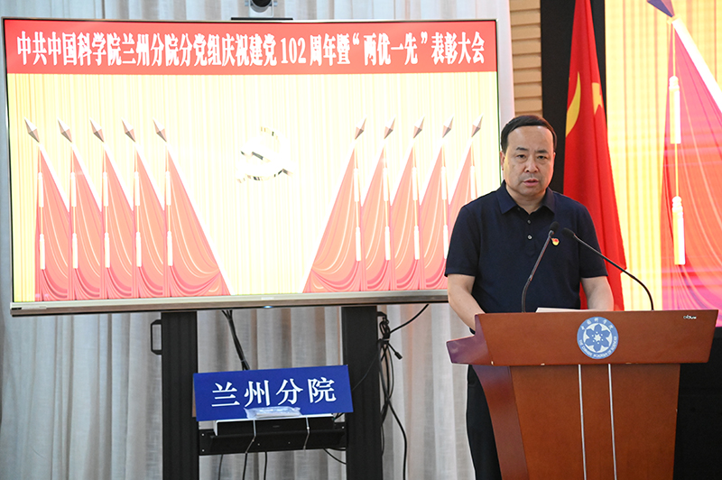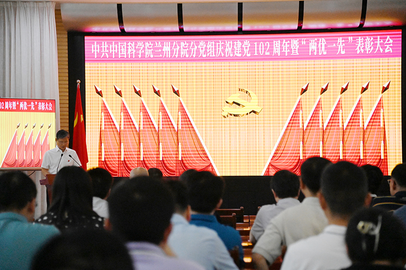 為慶祝中國共產(chǎn)黨成立102周年,深入開展學(xué)習(xí)貫徹習(xí)近平新時(shí)代中國特色社會(huì)主義思想主題教育,中共中國科學(xué)院蘭州分院分黨組、中共中國科學(xué)院蘭州分院系統(tǒng)單位委員會(huì)于6月26日召開慶祝中國共產(chǎn)黨成立102周年暨“兩優(yōu)一先”表彰大會(huì)。分黨組、系統(tǒng)單位黨委領(lǐng)導(dǎo)班子成員,蘭州、西寧地區(qū)院屬各單位黨委領(lǐng)導(dǎo)同志、黨辦主任,分院機(jī)關(guān)高級(jí)業(yè)務(wù)主管四級(jí)職員、各部門負(fù)責(zé)人、各黨支部(總支)書記以及受表彰的“兩優(yōu)一先”人員參加會(huì)議。會(huì)議由蘭州分院分黨組副書記、系統(tǒng)單位黨委副書記陳改學(xué)主持。