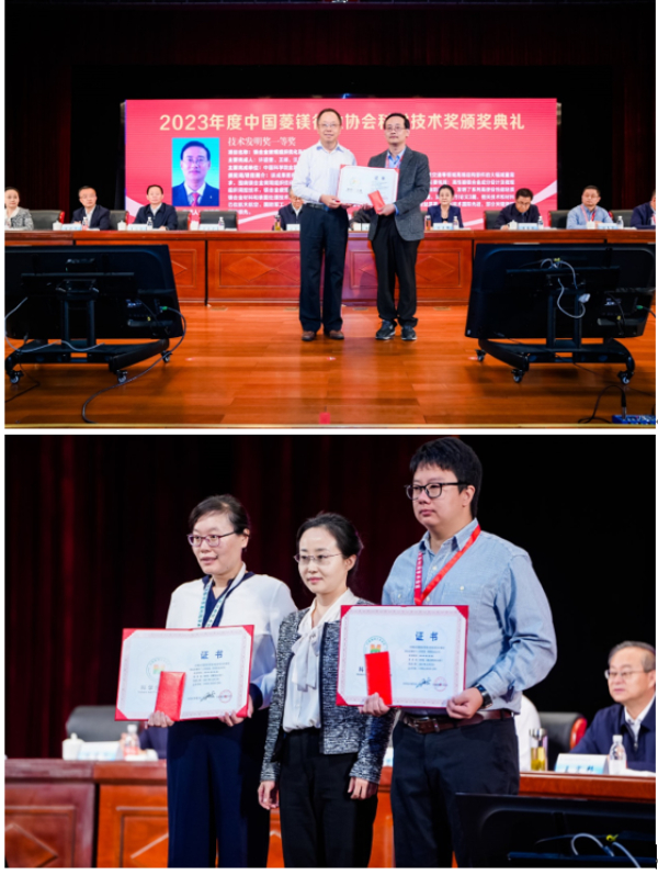 王定邦、吳志堅(jiān)共同為青海柴循鹽湖產(chǎn)業(yè)研究有限公司揭牌,吳志堅(jiān)、李穎虹分別為2023年度中國(guó)菱鎂協(xié)會(huì)科學(xué)技術(shù)獎(jiǎng)技術(shù)發(fā)明獎(jiǎng)一等獎(jiǎng)和青年科技獎(jiǎng)獲得者頒發(fā)證書。