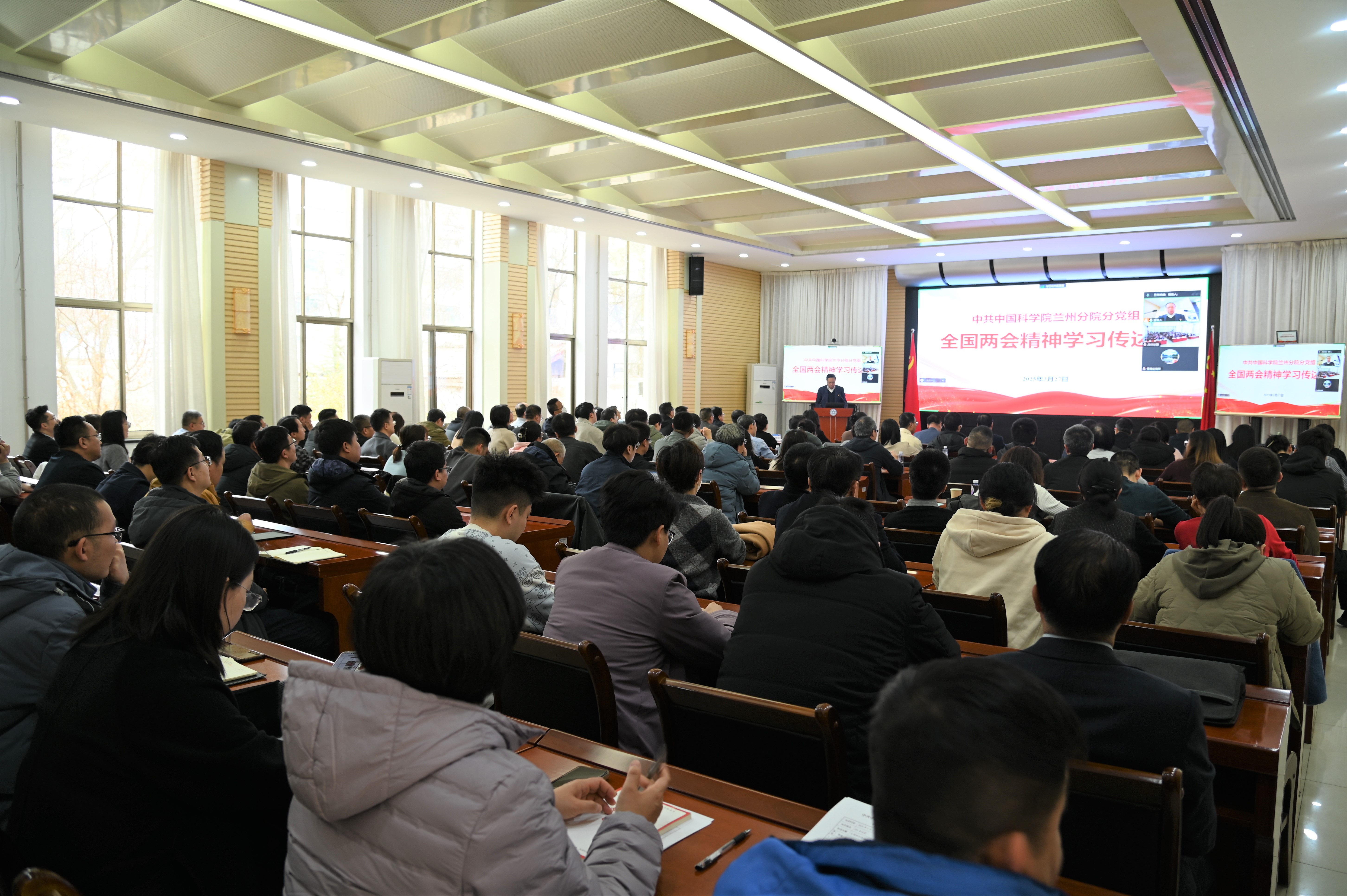 蘭州分院系統(tǒng)各單位領(lǐng)導(dǎo)班子成員、黨委委員、紀(jì)委委員、中層干部、黨支部書記、科研管理骨干代表、分院機(jī)關(guān)全體職工參加會議。