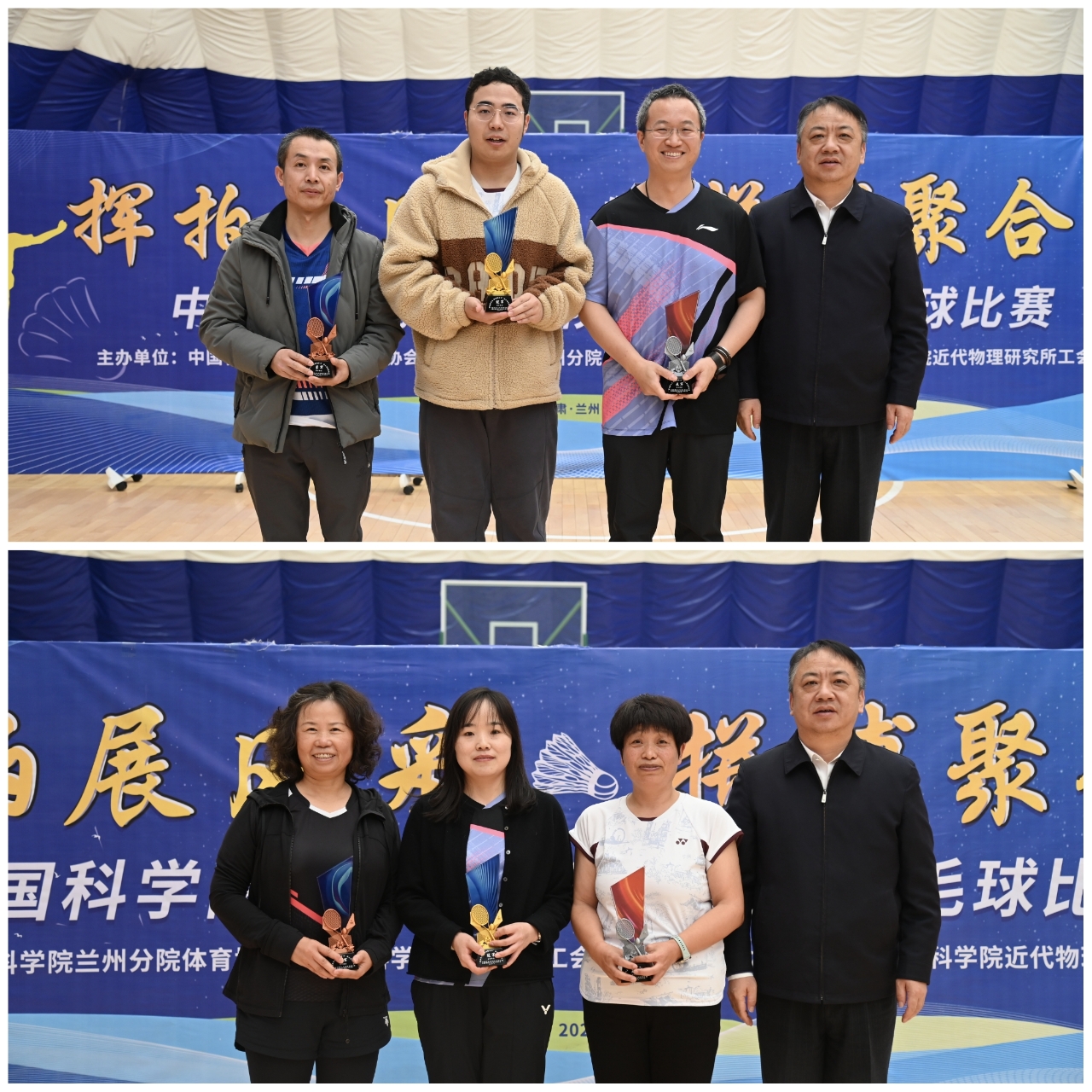 經(jīng)過(guò)激烈比拼,蘭州化物所、近代物理所、西北研究院代表隊(duì)分別獲混合團(tuán)體賽冠軍、亞軍和季軍;蘭州分院機(jī)關(guān)、青海鹽湖所和西北高原所代表隊(duì)分別獲優(yōu)秀組織獎(jiǎng)、團(tuán)結(jié)拼搏獎(jiǎng)和體育道德風(fēng)尚獎(jiǎng)。蘭州化物所文澤東、近代物理所封安輝和青海鹽湖所王懷有分別獲男子單打冠軍、亞軍和季軍;近代物理所吳曉霞、蘭州化物所楊恩芳和西北高原所陳曉澄分別獲女子單打冠軍、亞軍和季軍。