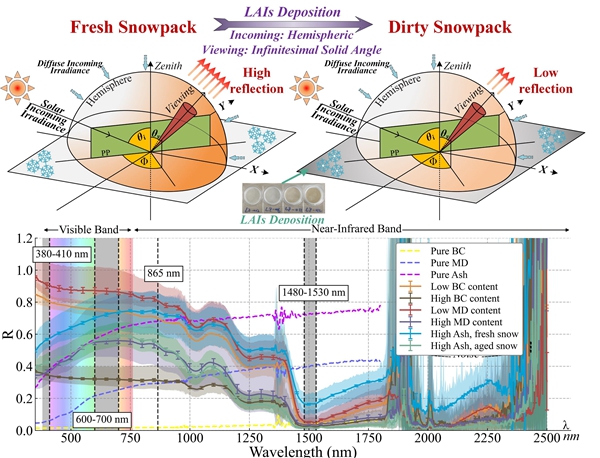 ES&T:積雪不同吸光物質(zhì)(黑碳、沙塵和灰分)對(duì)積雪HDRF特征的影響研究獲進(jìn)展