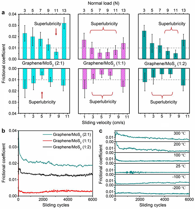 研究人員開(kāi)發(fā)了一種通過(guò)摻入石墨烯邊緣氧削弱納米粉體邊緣釘扎效應(yīng)的簡(jiǎn)易方法,實(shí)現(xiàn)了二維納米粉體到異質(zhì)結(jié)轉(zhuǎn)化,制備了由大量納米尺度同質(zhì)結(jié)和異質(zhì)結(jié)共存的材料,實(shí)現(xiàn)了載荷、速度等可調(diào)、寬溫域(-200~300°C)和宏觀(guān)尺度結(jié)構(gòu)超潤(rùn)滑,揭示了異質(zhì)滑移和同質(zhì)鎖定的超滑調(diào)控機(jī)制。該研究結(jié)果對(duì)結(jié)構(gòu)超潤(rùn)滑的規(guī)模放大和工程應(yīng)用具有重要意義。
