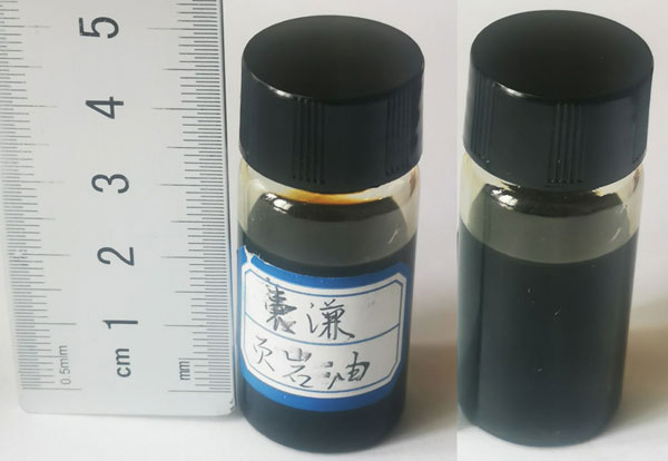 中國科學院青海鹽湖研究所馬海州研究員研究團隊,多年來持續(xù)在青海省玉樹州囊謙縣含鹽盆地開展研究工作,由于油-鹽共生是普遍的地質現(xiàn)象,在考察古近紀貢覺組含鹽地層過程中,課題組在囊謙盆地多處發(fā)現(xiàn)了厚層優(yōu)質油頁巖,采集的油頁巖樣品可直接點燃(圖1)。近日,課題組自主設計了油頁巖干餾的實驗裝置,并在干餾實驗中成功獲得了頁巖油(圖2),目前利用青藏高原的油頁巖開展干餾實驗研究國內外尚未見報道。干餾所獲得的頁巖油經中國科學院西北生態(tài)環(huán)境資源研究院油氣研究中心吳應琴研究員和青海大學祁昭林博士分析,其族分為瀝青質占0.53%、飽和烴占18.83%、芳烴占12.83%、非烴占67.67%,與我國撫順、茂名和美國綠河及愛沙尼亞的油頁巖干餾頁巖油類似。頁巖油經過加工精制,除了可以得到汽油、柴油、煤油外,還可以獲得石蠟、酚類等化工副產品。