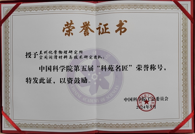 蘭州化物所空間潤滑材料與技術(shù)研究團隊獲第五屆中國科學院科苑名匠表彰
