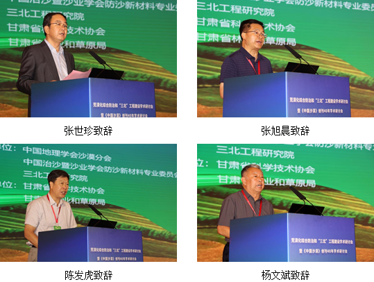 大會由中國地理學會沙漠分會、中國治沙暨沙業(yè)學會防沙新材料專業(yè)委員會、三北工程研究院共同主辦,甘肅省科學技術(shù)協(xié)會、甘肅省林業(yè)和草原局支持,中國科學院西北生態(tài)環(huán)境資源研究院、干旱區(qū)生態(tài)安全與可持續(xù)發(fā)展重點實驗室、甘肅省科學技術(shù)期刊學會和《中國沙漠》編輯部共同承辦。西北研究院黨委書記張長春主持開幕式。