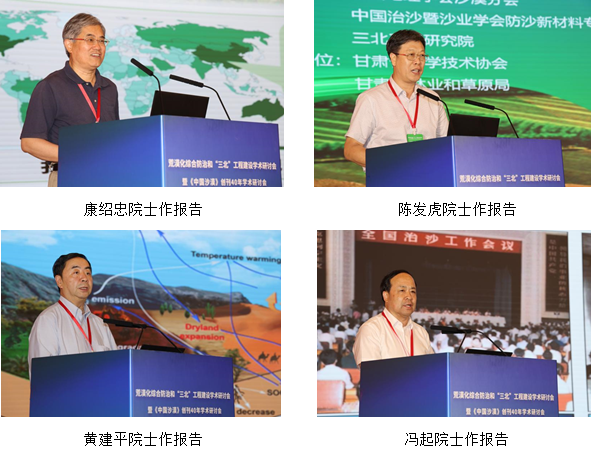 研討會以“荒漠化綜合防治和‘三北’工程建設(shè)”為主題,旨在深入學習貫徹落實習近平總書記關(guān)于加強荒漠化綜合防治和推進生態(tài)工程建設(shè)重要講話精神,推動山水林田湖草沙一體化保護和系統(tǒng)治理,總結(jié)和交流相關(guān)研究成果,促進人與自然和諧共生。大會邀請了丁一匯、姚檀棟、侯立安、鄭曉靜、康紹忠、陳發(fā)虎、黃建平、馮起、方小敏、朱教君等10位院士和王濤、李新榮、楊小平、董治寶、陳亞寧、鹿化煜、屈建軍、楊文斌等8位專家作主題報告,并組織了14個分論壇的專題報告。南志標、賴遠明、楊志峰院士參會。康世昌、曹廣超、盧琦、李廣、勾曉華、楊興國分別主持大會主題報告。與會專家學者圍繞荒漠化綜合防治和“三北”工程建設(shè)的新理念、新技術(shù),深入探討了荒漠化地區(qū)氣候變化與生態(tài)系統(tǒng)響應(yīng)、荒漠生態(tài)修復與治理、全球氣候變化對西北暖濕化趨勢的影響等前沿問題。