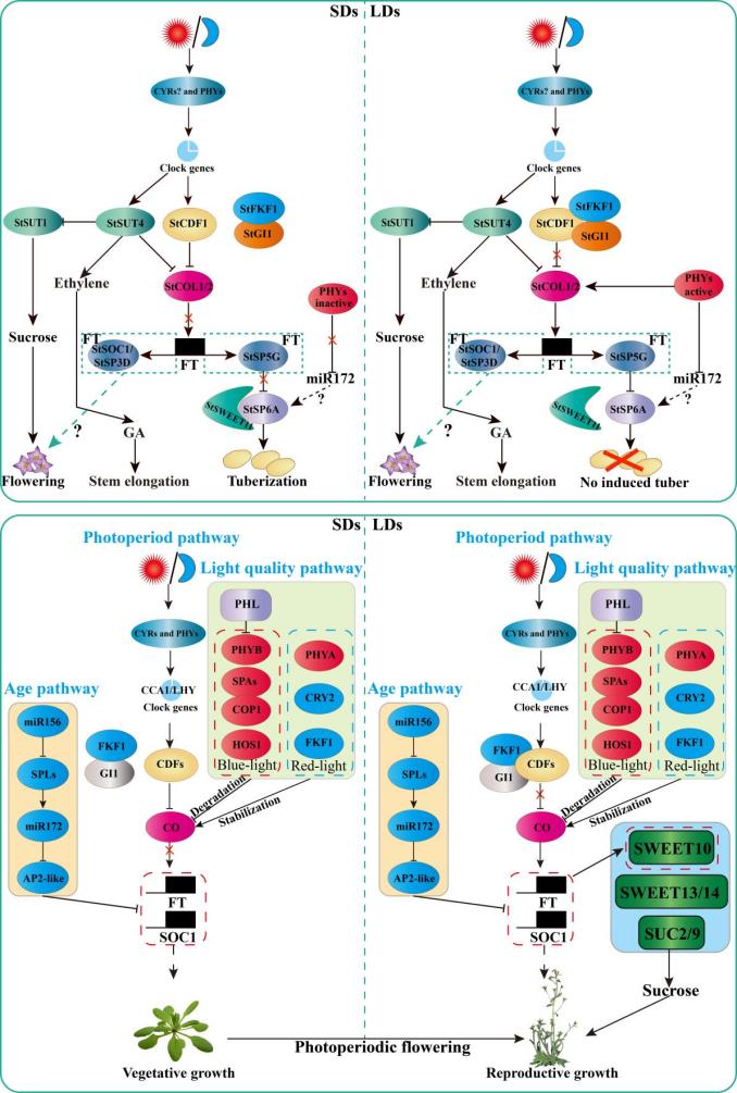 糖轉(zhuǎn)運(yùn)蛋白的主要作用是源庫(kù)運(yùn)輸與調(diào)控,影響植物生長(zhǎng)發(fā)育,響應(yīng)環(huán)境脅迫,與其他信號(hào)轉(zhuǎn)導(dǎo)通路的交互,介導(dǎo)植物-微生物的互作?;诖?,文章提出了通過(guò)糖轉(zhuǎn)運(yùn)蛋白提高作物產(chǎn)量的策略,增強(qiáng)糖轉(zhuǎn)運(yùn)蛋白與共生微生物的相互作用,提高作物對(duì)養(yǎng)分(如磷和氮)的吸收和運(yùn)輸效率,從而促進(jìn)作物生長(zhǎng),增加作物產(chǎn)量;建立光周期-糖轉(zhuǎn)運(yùn)蛋白模型,提高光合效率與資源分配,優(yōu)化光合作用,提高作物產(chǎn)量;借助 GWAS(全基因組關(guān)聯(lián)分析)和QTL(數(shù)量性狀位點(diǎn))定位技術(shù)及基因編輯(如 CRISPR-Cas9)相結(jié)合的技術(shù),通過(guò)遺傳策略改良作物,以達(dá)到增加作物產(chǎn)量的目的。該綜述文章為深入理解糖轉(zhuǎn)運(yùn)蛋白的作用機(jī)制提供了新思路,為提高作物產(chǎn)量提供了新的策略,對(duì)保障糧食安全具有重要參考價(jià)值和理論指導(dǎo)意義。