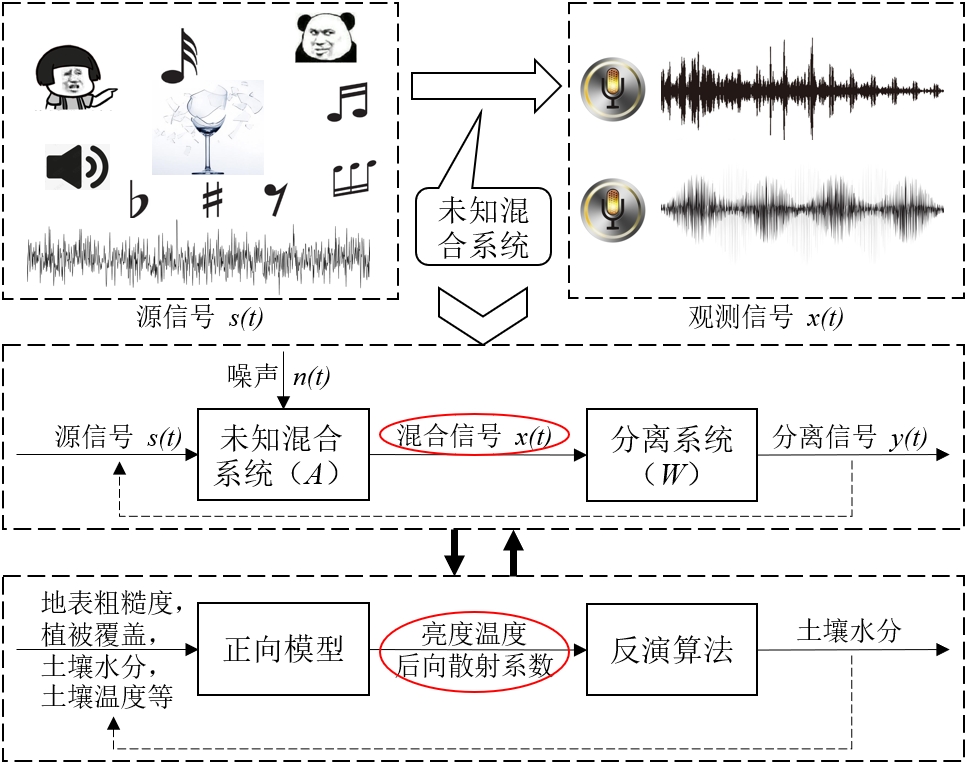 微波遙感可以用來(lái)測(cè)量地球表面的土壤水分,但傳感器接收到的微波信號(hào)是土壤水分、土壤溫度、地表粗糙度、植被覆蓋和大氣條件等多個(gè)信號(hào)的非線(xiàn)性混合。如何從這一復(fù)雜、非線(xiàn)性的混合信號(hào)中精準(zhǔn)地提取土壤水分信息,是遙感反演長(zhǎng)期關(guān)注的難點(diǎn),尤其當(dāng)缺乏大量先驗(yàn)信息(如地表粗糙度和植被等)時(shí),傳統(tǒng)方法往往面臨“病態(tài)反演問(wèn)題”。