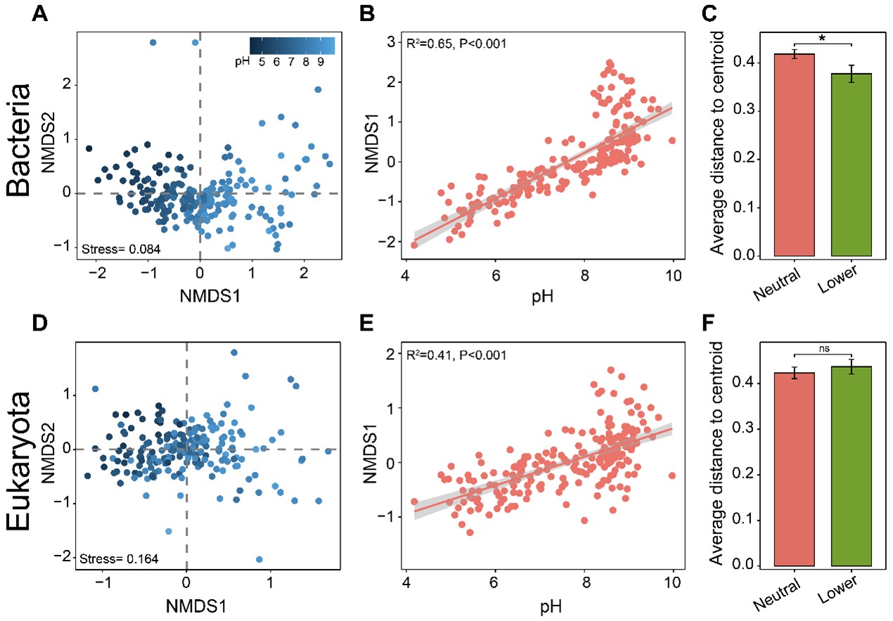 近日,中國科學院西北生態(tài)環(huán)境資源研究院李玉強研究員團隊受Global Change Biology期刊邀請發(fā)表研究成果,利用多元交叉驗證(NMDS+PLS-PM+PERMDISP)方法,系統(tǒng)揭示了土壤酸化過程中細菌和真核生物β-多樣性的解耦規(guī)律,及細菌和真核生物群落組成對土壤酸化的響應(yīng)差異,為理解土壤生態(tài)系統(tǒng)穩(wěn)定性提供了新視角。