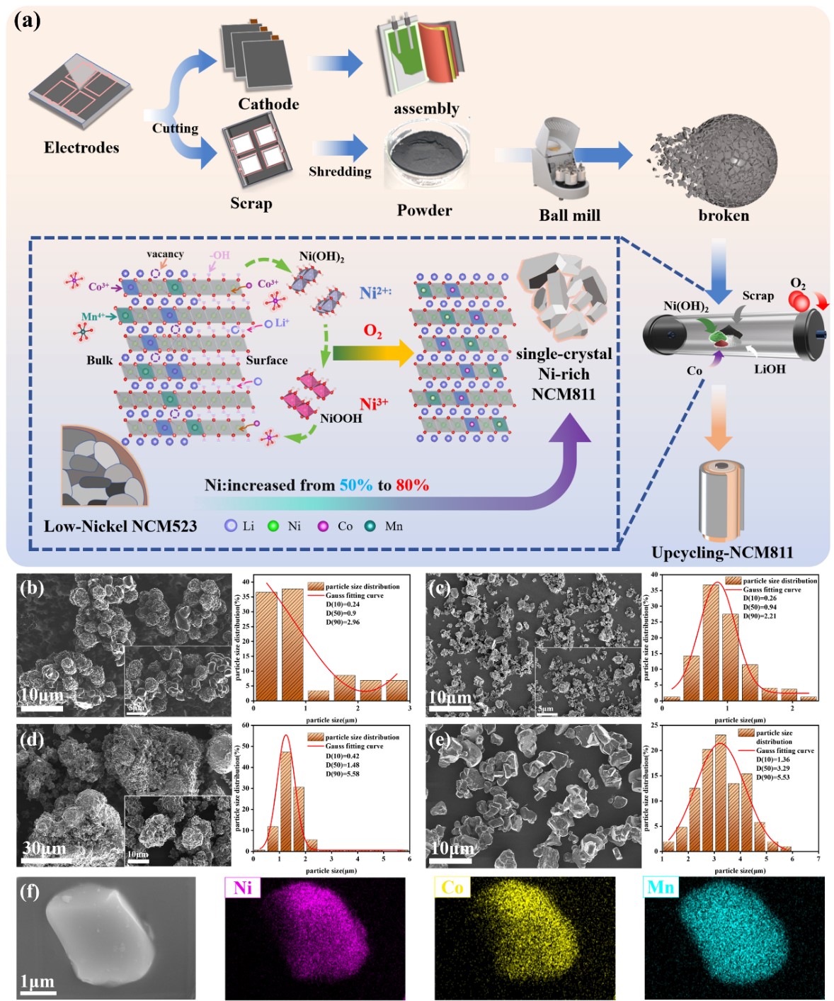 三元正極混合廢料(NCM523)升級(jí)再生機(jī)理示意圖