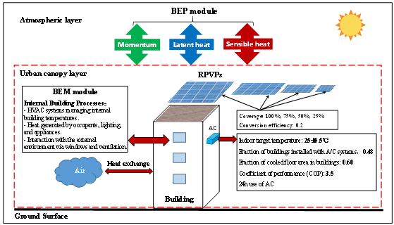 在WRF/BEP+BEM模型中用于太陽(yáng)能板屋頂模擬的城市網(wǎng)格單元示意圖