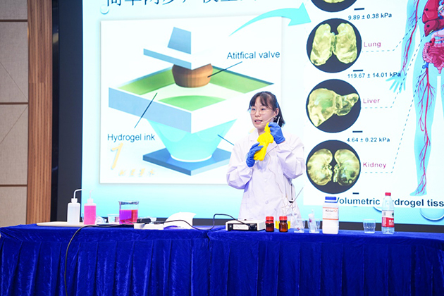 7月13至14日,由中國(guó)科學(xué)院學(xué)部工作局主辦,中國(guó)科學(xué)院武漢植物園承辦的中國(guó)科學(xué)院2023年科學(xué)實(shí)驗(yàn)展演匯演在武漢舉行。來(lái)自全院18家院屬單位組織的23支參賽隊(duì)伍將科學(xué)知識(shí)與多種表演藝術(shù)融合,為公眾帶來(lái)一場(chǎng)趣味橫生的科學(xué)實(shí)驗(yàn)秀。中國(guó)科學(xué)院蘭州化學(xué)物理研究所獲“優(yōu)秀組織獎(jiǎng)”,固體潤(rùn)滑國(guó)家重點(diǎn)實(shí)驗(yàn)室3D打印摩擦器件課題組魯耀鐘工程師和2021級(jí)材料學(xué)胡丹麗博士展演的《“軟萌”濕滑結(jié)構(gòu)化水凝膠的構(gòu)筑及功能化演示》獲優(yōu)秀獎(jiǎng)。