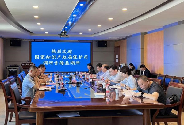 7月18日,國家知識產(chǎn)權(quán)局知識產(chǎn)權(quán)保護司一級巡視員毛金生一行到青海鹽湖所調(diào)研知識產(chǎn)權(quán)工作情況,并開展座談交流。青海省知識產(chǎn)權(quán)局局長趙海濤等陪同調(diào)研。