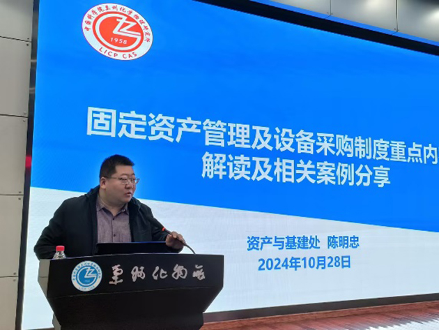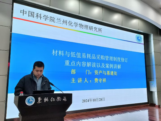 資產(chǎn)與基建處處長陳建介紹了新修訂的資產(chǎn)采購與管理相關(guān)制度,陳明忠作了題為“固定資產(chǎn)管理及設(shè)備采購制度重點內(nèi)容解讀及相關(guān)案例分享”的報告,分析了研究所資產(chǎn)管理形勢,結(jié)合案例解讀了新修訂的固定資產(chǎn)采購制度。費守祥作了題為“料與低值易耗品采購管理制度修訂重點內(nèi)容解讀以及案例講解”的報告,介紹了材料與低值易耗品采購、稀貴金屬和貴重試劑、易制毒化學品和易制爆化學品管理,分享了相關(guān)案例。