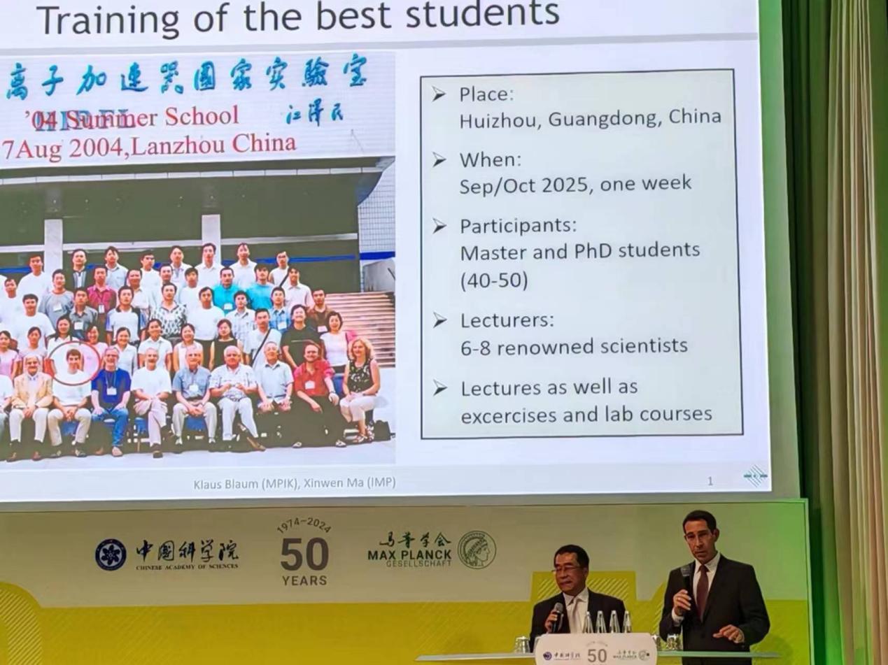 作為中國科學(xué)院與德國馬克斯·普朗克科學(xué)促進(jìn)學(xué)會(huì)合作五十周年系列慶祝活動(dòng)的重要組成部分,本次研討會(huì)的雙方代表參加了相關(guān)慶典活動(dòng)。近代物理所和馬普核物理所還將聯(lián)合承辦首屆“中國科學(xué)院與德國馬克斯·普朗克科學(xué)促進(jìn)學(xué)會(huì)暑期學(xué)?!保撌钇趯W(xué)校預(yù)計(jì)2025年9月在中國惠州舉辦。