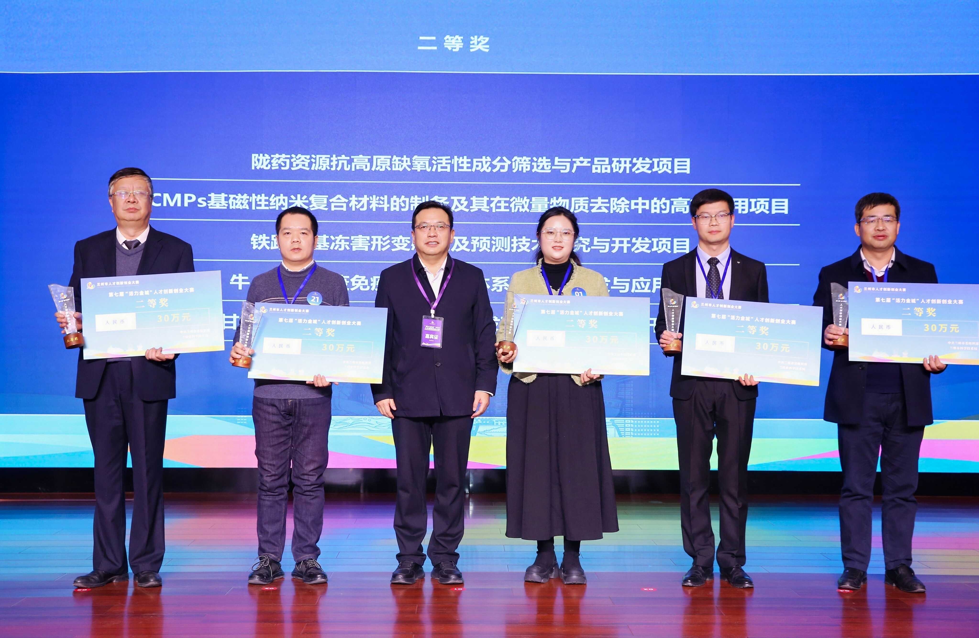 12月22日,由中共蘭州市委組織部主辦,蘭州市科學(xué)技術(shù)局承辦的第七屆“活力金城”人才創(chuàng)新創(chuàng)業(yè)大賽在蘭州舉辦。中國科學(xué)院蘭州化學(xué)物理研究所馬鵬軍副研究員承擔(dān)的“面向西部地區(qū)太陽能溫差發(fā)電耦合鋰電池儲電一體化研究”項目獲一等獎,楊軍麗研究員承擔(dān)的“隴藥資源抗高原缺氧活性成分篩選與產(chǎn)品研發(fā)”項目獲二等獎。