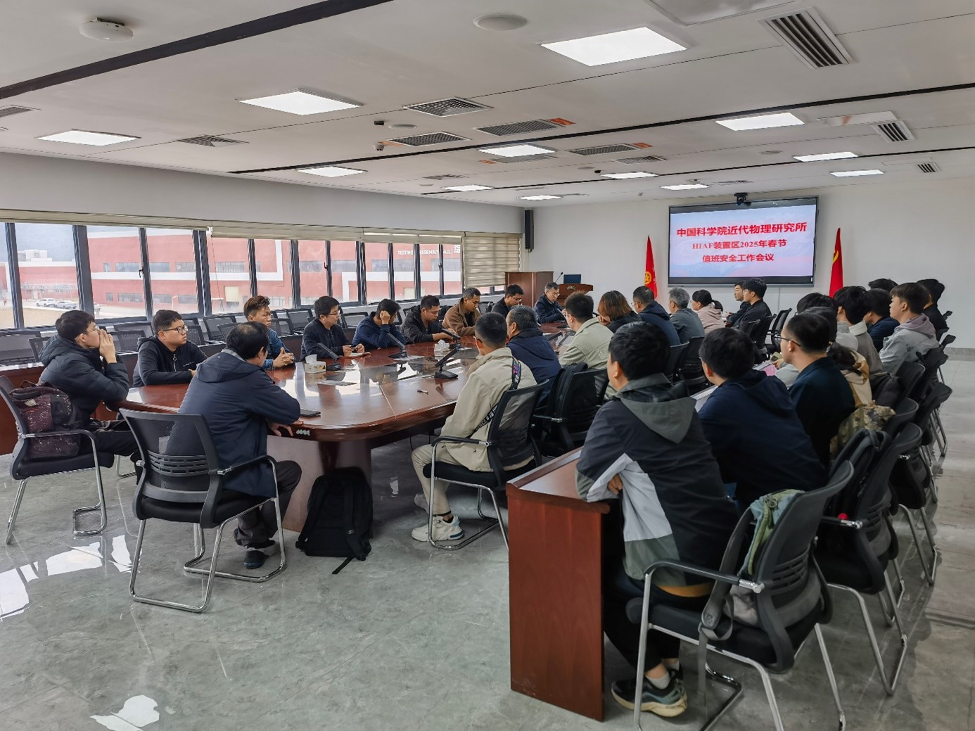 為確保春節(jié)期間研究所各項(xiàng)工作安全有序地推進(jìn),1月22日,中國(guó)科學(xué)院近代物理研究所副所長(zhǎng)楊建成在惠州黃埠園區(qū)召開(kāi)春節(jié)值班安全工作會(huì)議,并現(xiàn)場(chǎng)檢查兩裝置安全工作。