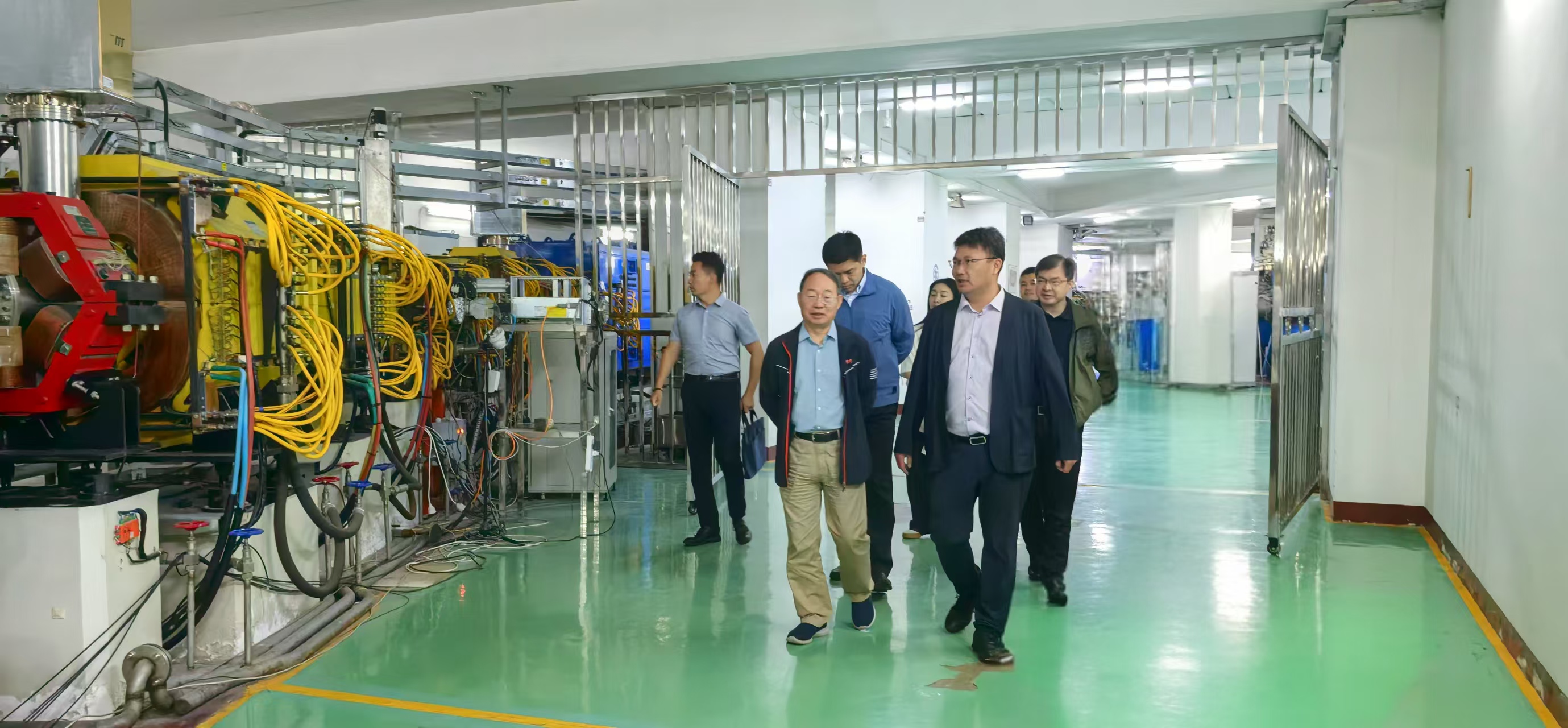 隨后,胡正國(guó)陪同聶生奎一行實(shí)地參觀了“國(guó)際反質(zhì)子與離子大科學(xué)研究基地”的依托平臺(tái)----蘭州重離子加速器國(guó)家實(shí)驗(yàn)室(HIRFL)。通過近距離觀摩,調(diào)研組詳細(xì)了解了大科學(xué)裝置在核物理、重離子科學(xué)及交叉學(xué)科研究中的所取得的科技成果和技術(shù)創(chuàng)新。聶生奎高度評(píng)價(jià)HIRFL作為我國(guó)核物理與重離子科學(xué)領(lǐng)域的重要研究平臺(tái),HIRFL長(zhǎng)期致力于科技創(chuàng)新與學(xué)術(shù)交流,成為持續(xù)有效開展國(guó)際科技交流與合作的典范。