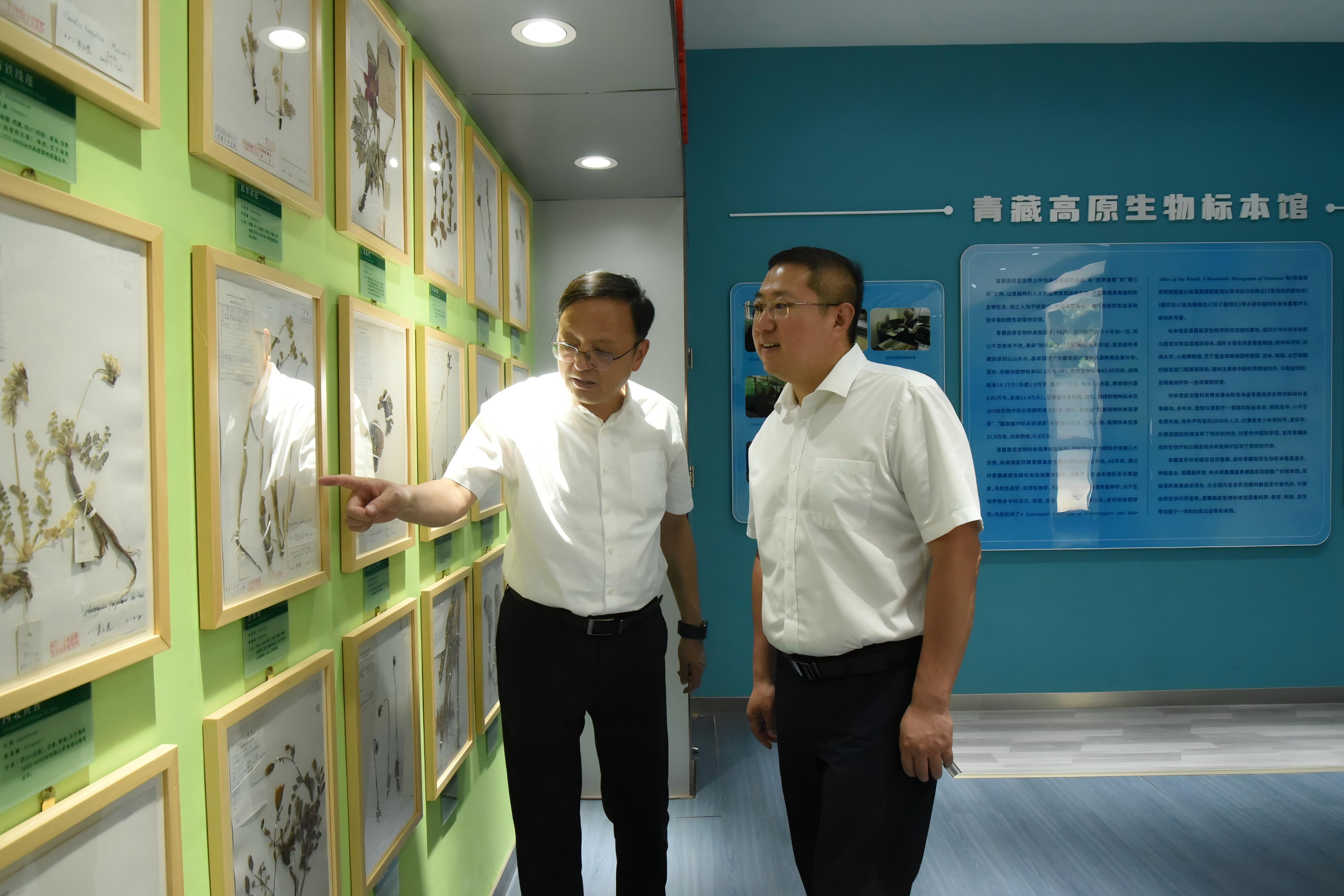 調(diào)研組一行先后調(diào)研了青藏高原生物種質(zhì)資源庫(kù)、青藏高原生物標(biāo)本館、西北高原所所史館,詳細(xì)了解種質(zhì)資源庫(kù)的資源收集保存現(xiàn)況、建設(shè)進(jìn)展、信息化共享情況及發(fā)展規(guī)劃,標(biāo)本采集、保藏、研究及科研科普工作開展情況,聽取研究所發(fā)展歷程和服務(wù)青藏高原生態(tài)保護(hù)與經(jīng)濟(jì)社會(huì)發(fā)展中所取得標(biāo)志性科技成果介紹。期間,曲玉祥與科研人員就生態(tài)保護(hù)、特色農(nóng)牧業(yè)、生物醫(yī)藥等科研工作進(jìn)展和科技創(chuàng)新平臺(tái)建設(shè)情況進(jìn)行了深入交流。