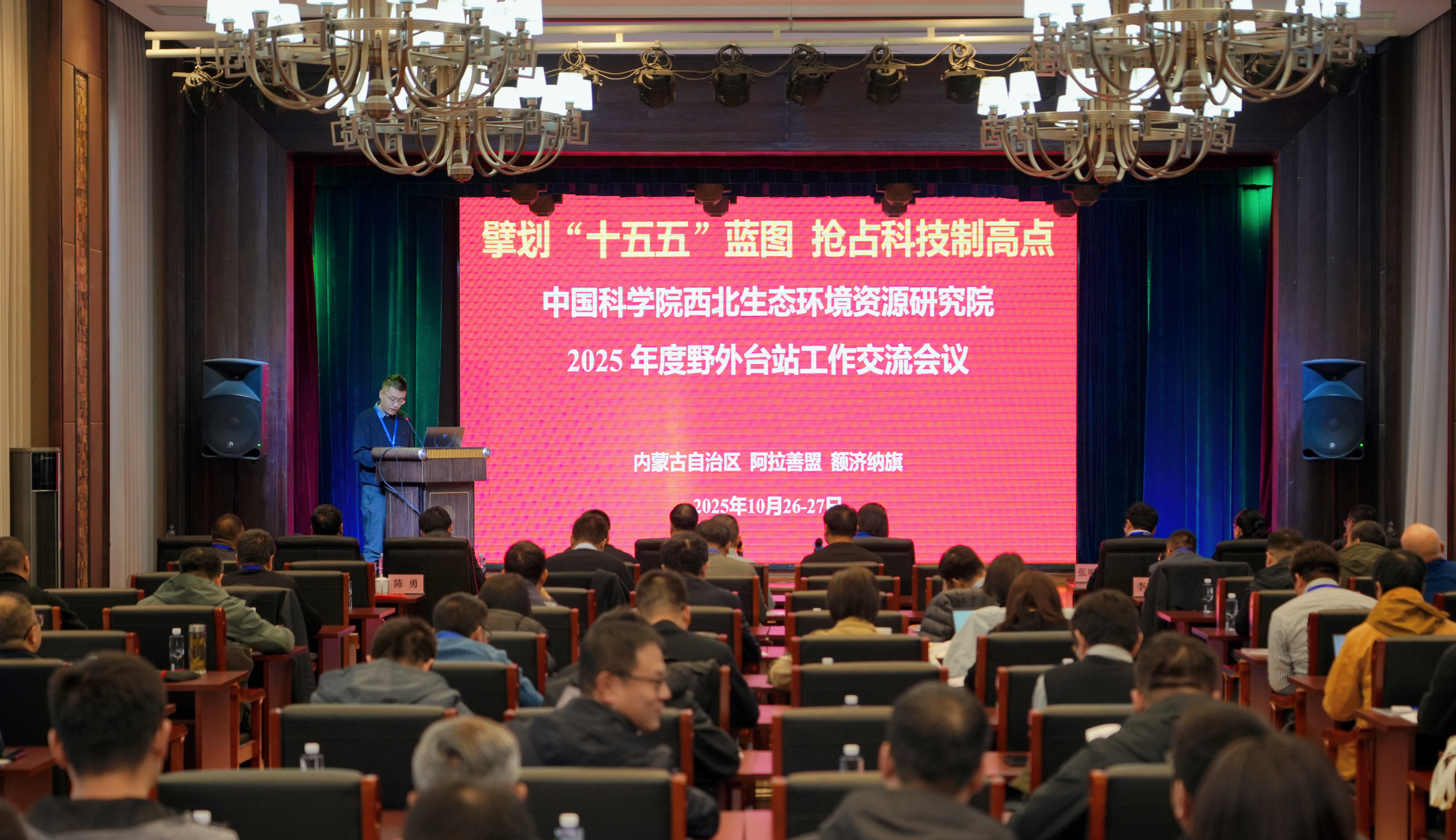 10月26日至27日,中國科學(xué)院西北生態(tài)環(huán)境資源研究院召開“擘劃‘十五五’藍(lán)圖 搶占科技制高點(diǎn)”2025年度野外臺站工作交流會。內(nèi)蒙古自治區(qū)阿拉善盟行政公署副盟長劉德翠,政協(xié)副主席、額濟(jì)納旗旗委書記王利軍,西北研究院院長馮起、副院長張明義,阿拉善盟科技局和林草局負(fù)責(zé)人出席會議,西北研究院野外臺站和管理部門負(fù)責(zé)人及相關(guān)科研人員80余人參加會議。馮起、張明義、科研管理處處長趙素平、阿拉善荒漠生態(tài)水文試驗(yàn)研究站站長席海洋和科研管理處副處長廖杰分階段主持會議。