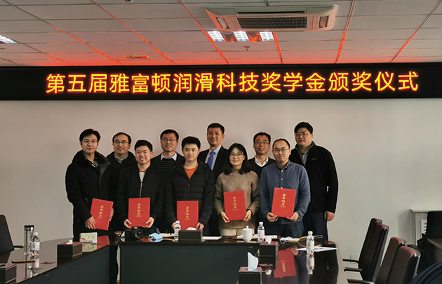 1月27日,中國科學(xué)院蘭州化學(xué)物理研究所第五屆雅富頓潤滑科技獎學(xué)金頒獎儀式在青島研發(fā)中心舉行。雅富頓添加劑公司亞太區(qū)技術(shù)總監(jiān)梁克堅(jiān)先生、蘭州化物所相關(guān)部門負(fù)責(zé)人參加了頒獎儀式。喻萍、蘇懷剛、鞠超、張立強(qiáng)、白常寧等5名學(xué)生獲2021年度獎學(xué)金。