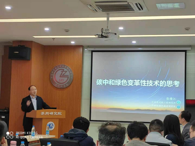 4月25日,中國(guó)科學(xué)院院士、中科院過程工程研究所張鎖江研究員應(yīng)邀訪問中國(guó)科學(xué)院蘭州化學(xué)物理研究所蘇州研究院,并作了題為“碳中和綠色變革性技術(shù)的思考”的學(xué)術(shù)報(bào)告。