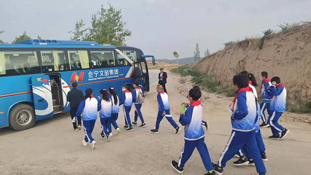 王馬山村中小學師生22日早6時半就從村里出發(fā),于蒙蒙細雨中驅車160公里趕赴蘭州,至上午10時到達蘭州化物所,研究所安排了包括科普報告、實驗室參觀、科學小實驗、化學互動游戲等一系列活動。