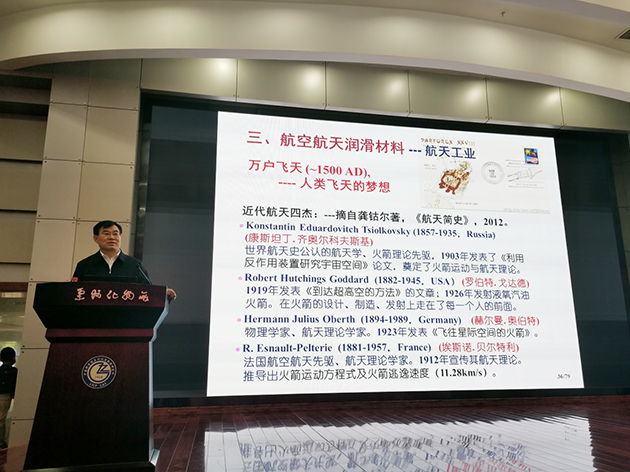 蘭州化物所所長、黨委書記王齊華主持科普報告會,他代表全所干部職工對王馬山村中小學師生們的到來表示熱烈歡迎,并介紹了此次活動的背景等情況。中科院院士、蘭州化物所學術委員會副主任委員劉維民研究員為師生們作了題為“高性能潤滑材料技術助力現代化強國建設”的報告,介紹了潤滑劑的作用、潤滑油脂研究的重要性、航空航天潤滑材料、高端裝備潤滑油脂、軌道交通潤滑材料以及潤滑科技工作者的使命,并勉勵王馬山村中小學的孩子們克服困難、勤奮努力,將來成為德才兼?zhèn)?,忠誠于國家、民族和人民的優(yōu)秀人才。師生們還聆聽了研究所高級工程師宗莉題為“神奇的石頭——認識世界、利用資源”的報告,并參觀了羰基合成與選擇氧化國家重點實驗室、固體潤滑國家重點實驗室。