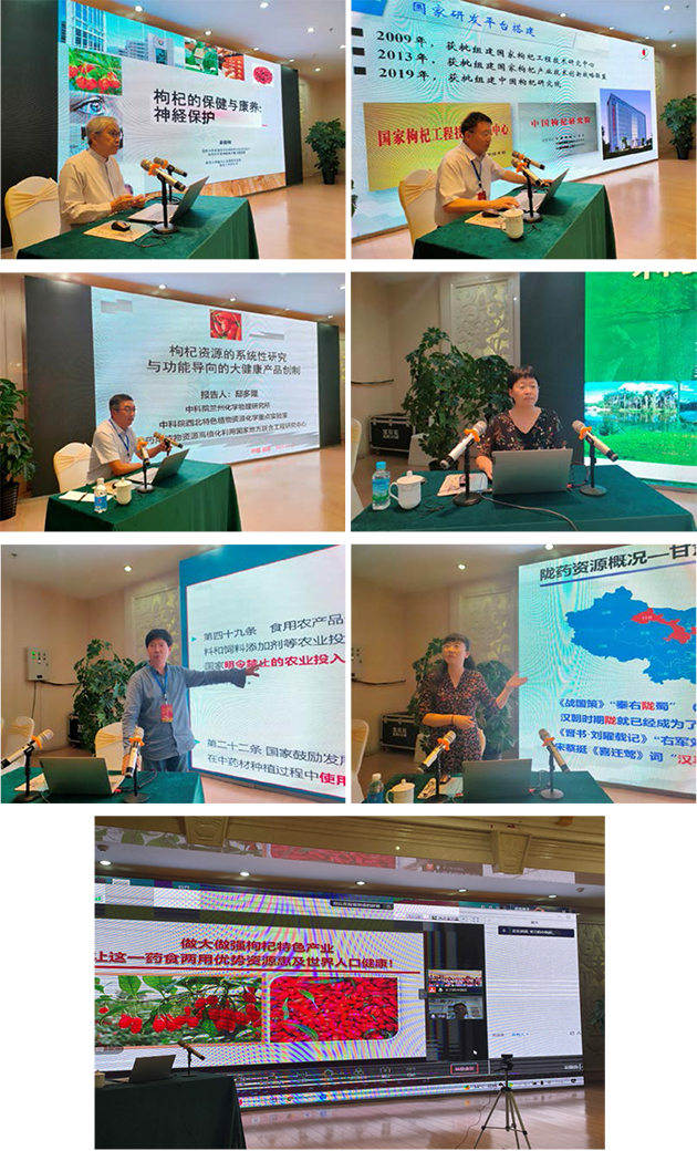 中國(guó)科學(xué)院院士、暨南大學(xué)蘇國(guó)輝教授,國(guó)家枸杞工程技術(shù)中心曹有龍研究員,蘭州化物所邸多隆研究員,中科院華南植物園王瑛研究員,中國(guó)醫(yī)學(xué)科學(xué)院藥用植物研究所徐常青研究員,蘭州大學(xué)胡芳弟教授和南京中醫(yī)藥大學(xué)郭盛副研究員分別作了題為“枸杞的保健與康養(yǎng)”“枸杞育種及新品種”“枸杞資源的系統(tǒng)性研究與功能導(dǎo)向的大健康產(chǎn)品創(chuàng)制”“枸杞重要性狀的分子機(jī)制及育種應(yīng)用”“枸杞主要病蟲(chóng)害種類及其發(fā)生規(guī)律與防治現(xiàn)狀”“枸杞大健康產(chǎn)業(yè)之路及含枸杞中藥口服液的開(kāi)發(fā)”“分類施策,促進(jìn)枸杞產(chǎn)業(yè)走多元化發(fā)展之路”的報(bào)告。