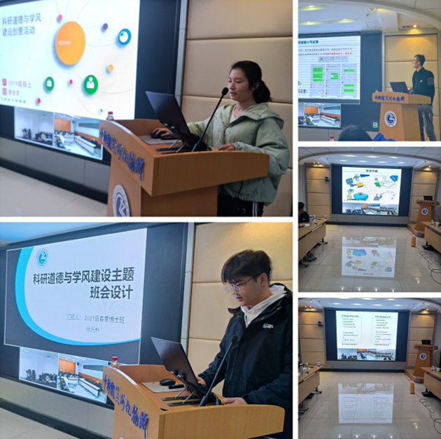 在所學習的碩士、博士研究生各班班長匯報了本班科研道德與學風建設活動方案,參會人員進行了交流和討論。通過評委現(xiàn)場評分,最終2020級秋季博士班獲得一等獎,2020級碩士和直博生班與2020級春季博士班獲得二等獎,其他班級獲得三等獎。