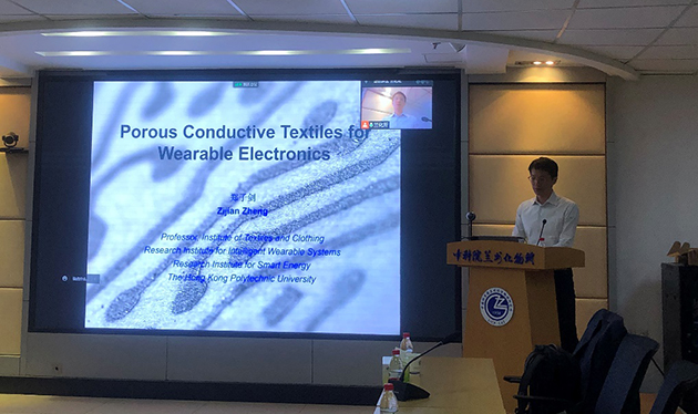 4月19日,香港理工大學(xué)鄭子劍教授應(yīng)邀到中國(guó)科學(xué)院蘭州化學(xué)物理研究所進(jìn)行學(xué)術(shù)交流,并作了題為“Porous Conductive Textiles for Wearable Electronics”的學(xué)術(shù)報(bào)告。相關(guān)領(lǐng)域科研人員100余人參加了線上和線下報(bào)告會(huì)。