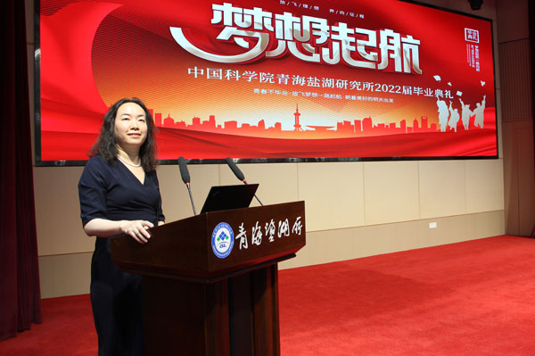 孫進(jìn)賀研究員作為導(dǎo)師代表發(fā)言,他向畢業(yè)生及導(dǎo)師們表示祝賀,祝愿大家在今后的道路上披荊斬棘、腳踏實地、砥礪前行。白露同學(xué)代表畢業(yè)生發(fā)言,表達(dá)了對國科大、對青海鹽湖所、對導(dǎo)師的感激與不舍,表示將牢記“鹽湖精神”,在今后的工作中努力做到艱苦奮斗、無私奉獻(xiàn)、團(tuán)結(jié)拼搏、開拓創(chuàng)新,把“鹽湖精神發(fā)”揚光大,并祝愿青海鹽湖所越辦越好,再創(chuàng)佳績。