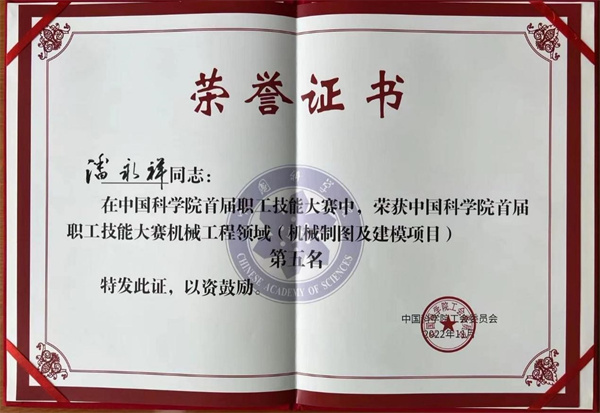 近代物理所通用技術(shù)中心機(jī)械準(zhǔn)直技術(shù)室共4名職工(含1名領(lǐng)隊)參賽,其中陸海嬌同志參加了代表作展示比賽,榮獲第四名的優(yōu)異成績。潘永祥和楊振2名同志參加了線上的機(jī)械制圖和建模比賽,潘永祥榮獲第五名的優(yōu)異成績。