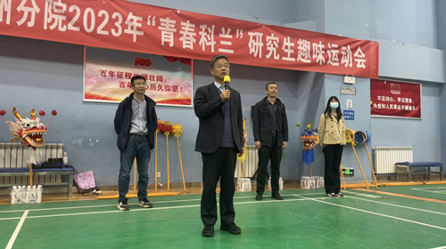 為認(rèn)真貫徹落實(shí)院及國科大關(guān)于做好學(xué)生思政工作的部署安排,切實(shí)提升分院系統(tǒng)校園文化建設(shè),3月30日下午,蘭州分院在蘭州市體育公園運(yùn)動(dòng)館舉辦了2023年“青春科蘭”研究生趣味運(yùn)動(dòng)會。蘭州分院分黨組副書記陳改學(xué)出席活動(dòng)并講話。