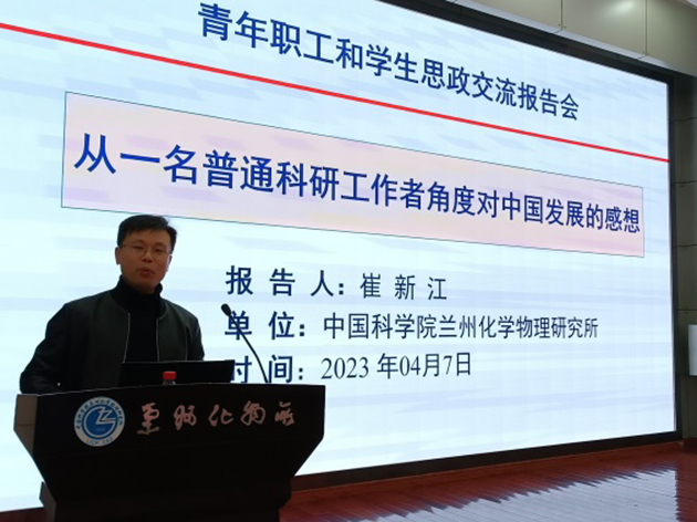 為深入貫徹落實習近平新時代中國特色社會主義思想和黨的二十大精神,進一步加強青年職工和學生思想政治教育,4月7日,中國科學院蘭州化學物理研究所舉辦了青年職工和學生思想政治教育輔導報告會,邀請研究所兩位青年科研骨干作報告,青年職工和學生360余人參加報告會。
