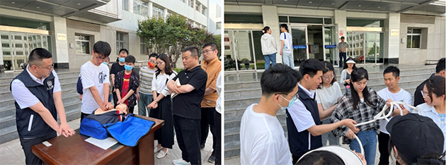 培訓(xùn)結(jié)束后,在戶(hù)外開(kāi)展了突發(fā)事件演練。教官逐一演示了心肺復(fù)蘇、海姆立克急救法和逃生自救繩索打結(jié),介紹了每個(gè)步驟的操作要點(diǎn),參會(huì)人員親身操作體驗(yàn),提升了應(yīng)急自救、互救技能。