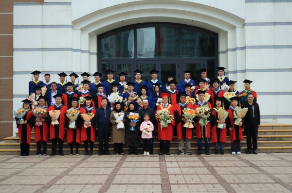會(huì)上,王建萍宣讀了學(xué)位授予決定,畢業(yè)生們依次上臺(tái),學(xué)位評定委員會(huì)主席吳志堅(jiān)對每位畢業(yè)生扶正流蘇、頒發(fā)紀(jì)念品并合影留念。