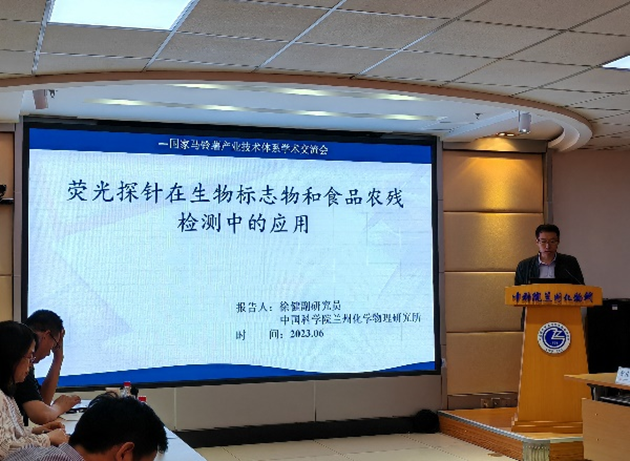 宋波濤教授介紹了光周期信號(hào)調(diào)控馬鈴薯開花與結(jié)薯的分子機(jī)制,提出了研究過程中發(fā)現(xiàn)的新問題。蘭州化物所環(huán)境材料與生態(tài)化學(xué)研究發(fā)展中心材料與分離分析課題組徐建副研究員作了題為“熒光探針在生物標(biāo)志物和食品農(nóng)殘檢測(cè)中的應(yīng)用”的報(bào)告,介紹了熒光探針的發(fā)展歷程、生物標(biāo)記物的檢測(cè)及熒光探針在食品農(nóng)殘中的應(yīng)用。