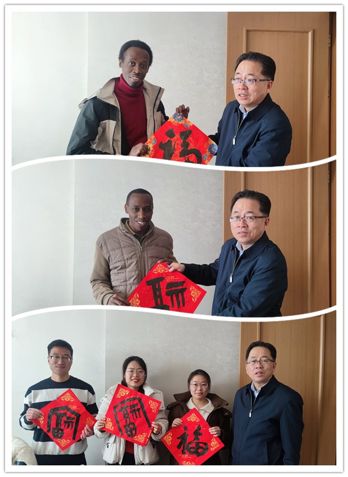 蘭州化物所黨委書(shū)記王齊華、副所長(zhǎng)石峰了解了外籍導(dǎo)師在研究所的工作生活情況,聽(tīng)取了對(duì)研究生教育工作的意見(jiàn)建議,詢(xún)問(wèn)了同學(xué)們的留所原因和假期安排,叮囑同學(xué)們注意實(shí)驗(yàn)室安全、宿舍用電安全和交通安全等,合理安排假期生活,并向大家送上新春祝福和春節(jié)禮包,祝福大家在研究所度過(guò)一個(gè)平安、快樂(lè)、祥和的春節(jié)。