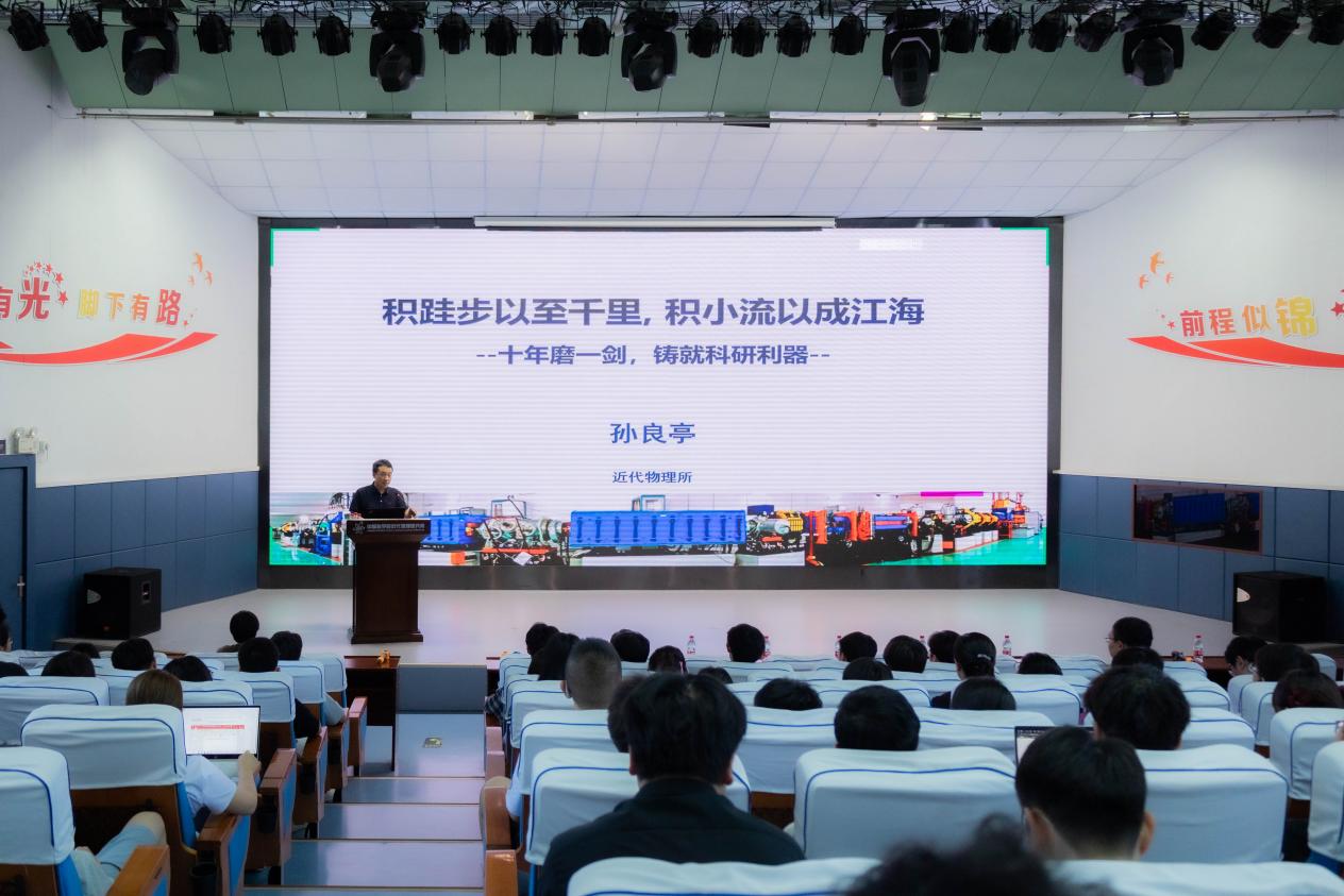 為深入貫徹落實(shí)習(xí)近平總書記關(guān)于弘揚(yáng)科學(xué)家精神和加強(qiáng)作風(fēng)學(xué)風(fēng)建設(shè)工作的重要指示精神,5月28日,中國科學(xué)院近代物理研究所開展“科學(xué)道德與學(xué)風(fēng)建設(shè)”主題日活動,邀請近代物理所黨委委員、低能粒子束技術(shù)中心主任孫良亭研究員作《積跬步以至千里,積小流以成江?!昴ヒ粍?,鑄就科研利器》主題報(bào)告。此次活動共100余位研究生參加,近代物理所紀(jì)委書記宋華龍出席,教育處副處長魏巍主持。